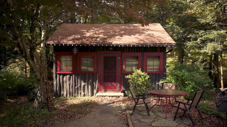 Step back in time to a romantic & cozy retreat where rustic charm meets modern comfort. Built in 1938, The Stargazer is a 220-square-foot gem, offering the quintessential cabin experience. This intimate open-concept space features a comfy queen bed, a high-back chair perfect for relaxation, and a dining table for two. The kitchenette is thoughtfully equipped with a refrigerator, microwave, toaster, countertop griddle, and a Nuwave single induction cooktop burner, as well as a coffee maker and a large counter with a kitchen sink. The three-piece bathroom includes a walk in shower. Original pine wood walls, floors, and door, along with vaulted ceilings and open beams, create an authentic, timeless atmosphere that adds to The Stargazer’s charm.